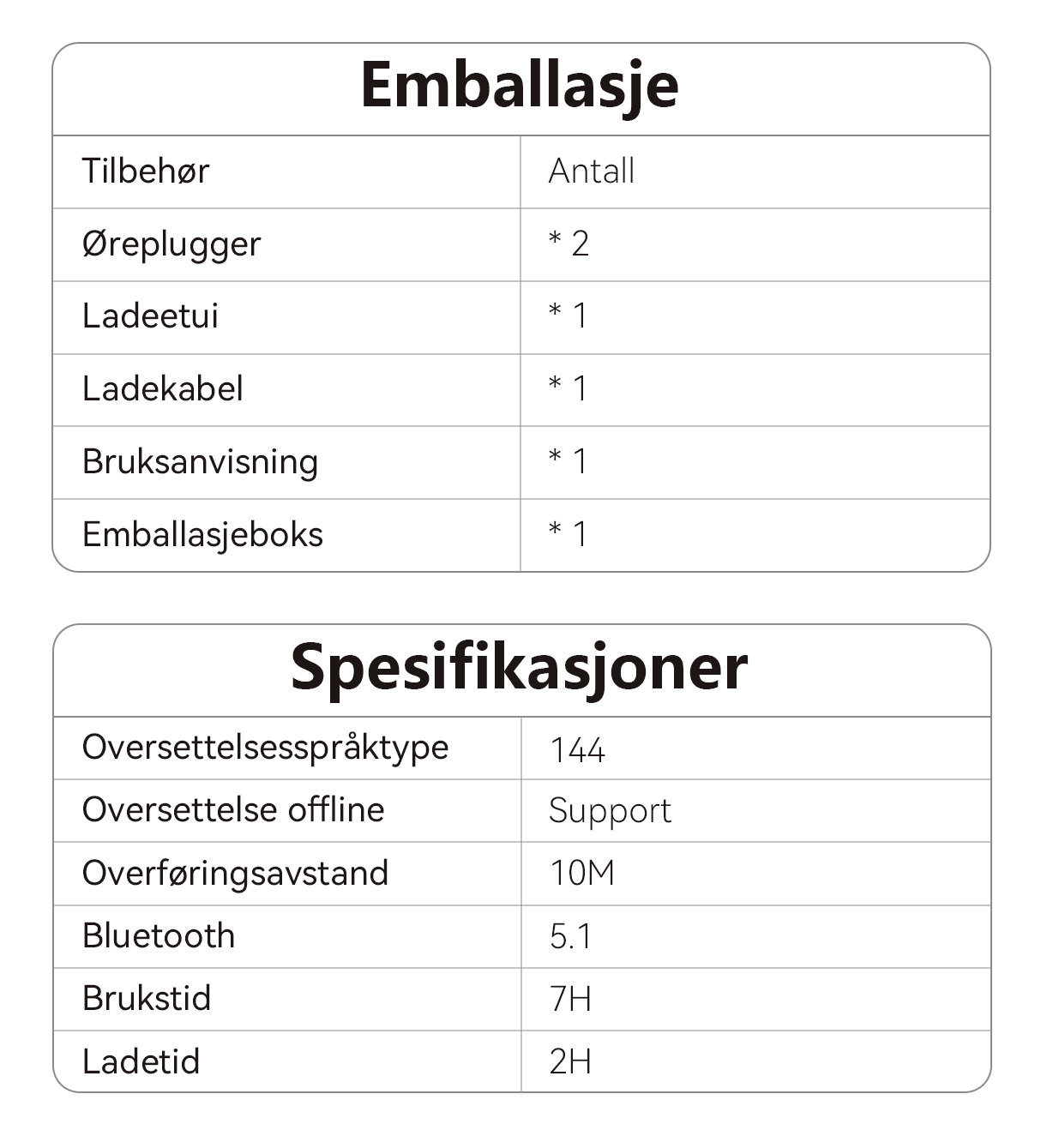 - Brusreduserende lyd - Sikrer tydelige og nøyaktige oversettelser.