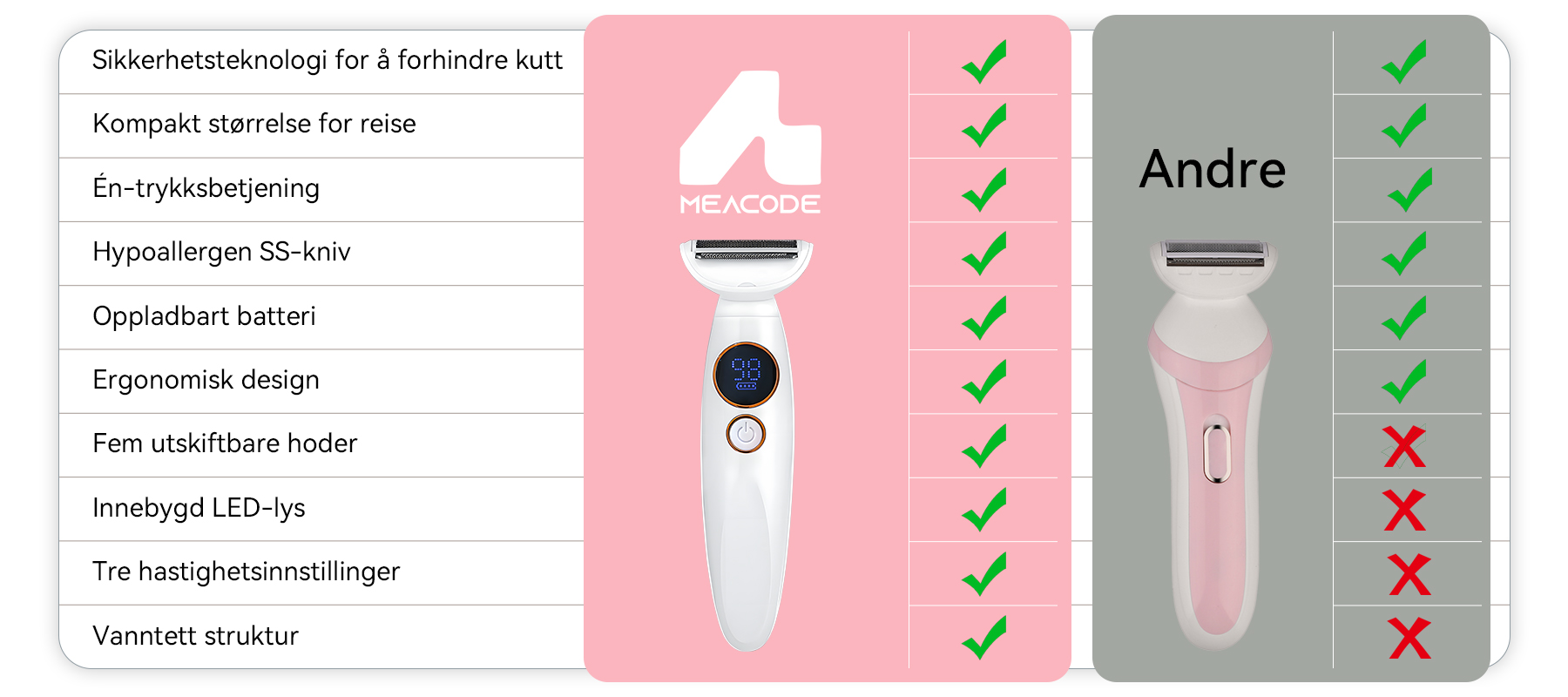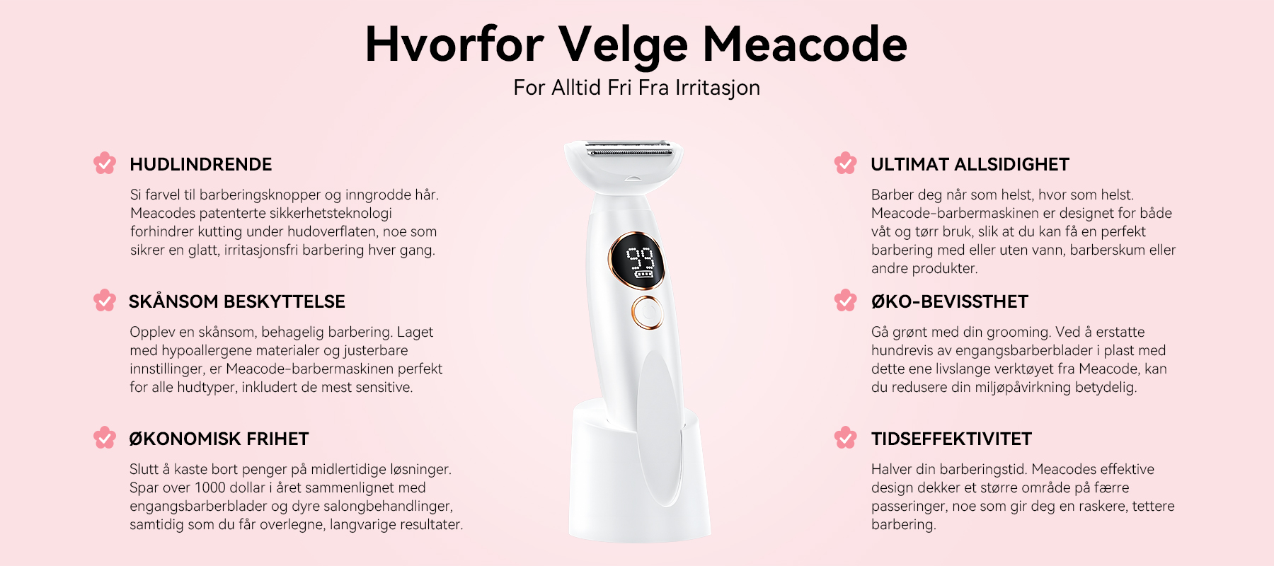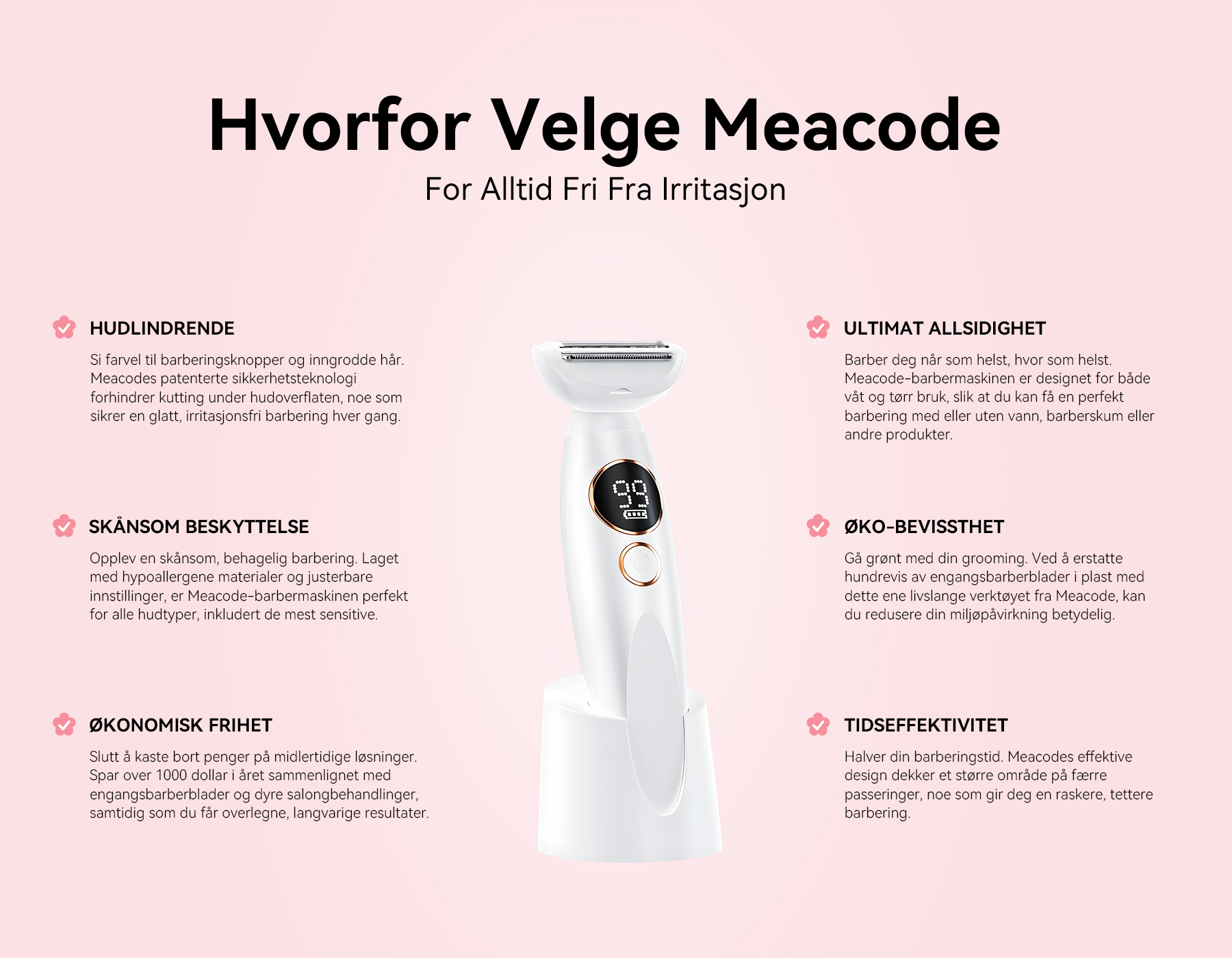 Meacode Bikin-Trimmer for Kvinner er din daglige pleierevitaliserer og selvtillitsbygger, som gir profesjonell barbering hjemme hos deg.