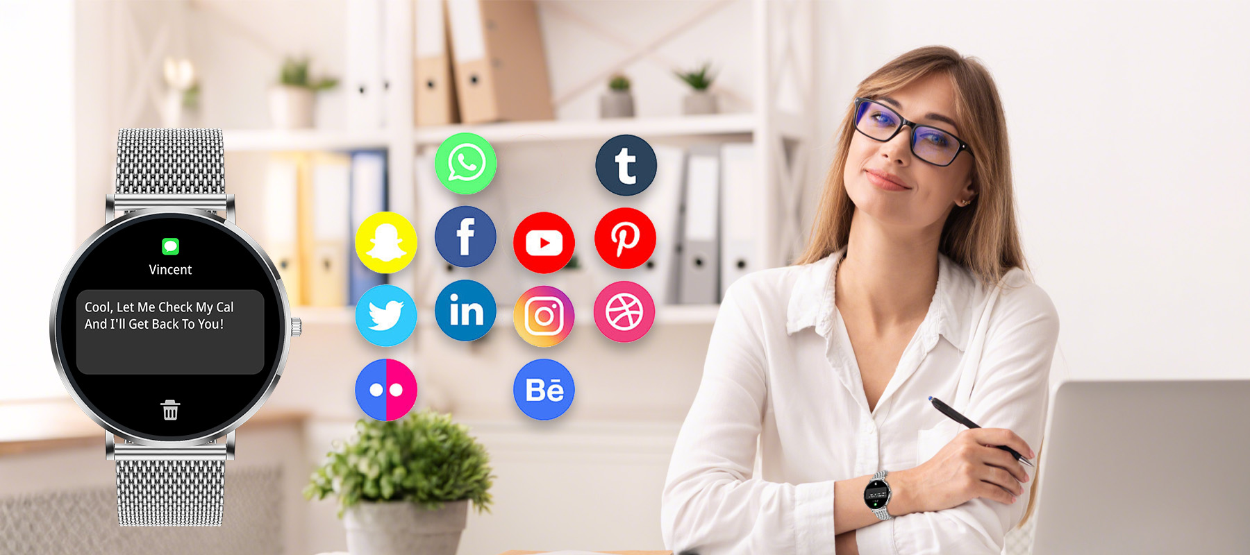 - Sømløse smart-varsler: Se anrop, tekstmeldinger og app-varsler på et øyeblikk, slik at du holder fokus uten å gå glipp av viktige oppdateringer.